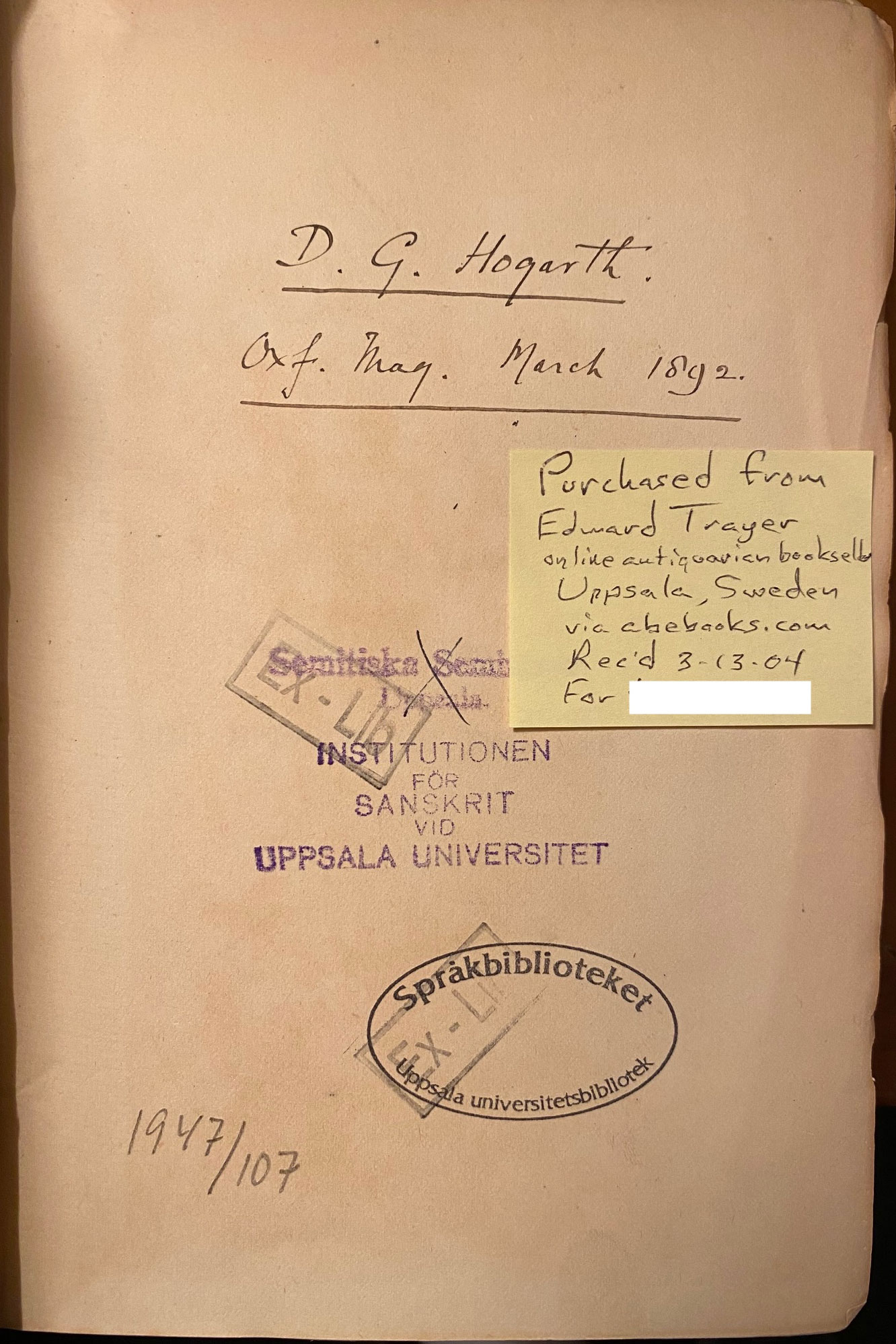 In the corner where the divan met the wall sat a wondrous and venerable figure.... The face of him on whom I gazed I can never forget, though I cannot describe it. Those piercing eyes seemed to read one's very soul: power and authority sat on that ample brow.... No need to ask in whose presence I stood, as I bowed myself before one who is the object of a devotion and love, which kings might envy and emperors sigh for in vain!As Mr. Browne seems to have been "struck all of a heap" whenever he met any prominent Babí whatever, he had an exceedingly emotional time in Cyprus and Syria. When we turn to the "Narrative," to Mr. Browne's notes, or to other accounts of the Babís, we can find nothing to account for such an attitude as the author elects to take up. The "Báb was simply another (and not a very striking specimen) of those Mahdis who appear periodically in all parts of the Moslem world in response to a craving for movement which the stationary revelation of Mahomet fails to satisfy, and to lead a temporary revolt against the oppression of the Tradition and the Schools. We cannot find that Mirza Ali Muhammad had any Idea to reveal to mankind, any secret whereby Islam was to be rejuvenated: he claimed a "mission" and founded a mystic organisation and a secret society, facts sufficient in themselves to draw after him a crowd of devoted followers in the imaginative East. When examined, this "Báb" was found to be a commonplace pre-tender, very imperfectly cognisant of the Tradition and the Schools which he opposed: but the simple fact that he did oppose them and suffered martyrdom is enough for many thousand Persians and Mr. Browne. There are no signs that Mirza Ali Muhammad will leave any permanent mark on religious or political history; he has no claim to rank even with Waháb or the Soudanese prophet; yet Mr. Browne can speak of him in terms not unworthy of the camel-driver of Mecca! Time may vindicate the author: but for the present we can only record our belief that the prominence given to the " Báb" in this book is an absurd violation of historical perspective; and the translation of the Traveller's Narrative a waste of the powers and opportunities of a Persian scholar. [See also a Hogarth's handwritten note on the original document (1892, copy dated 1947); the post-it note is from K. Asplund (2004).] |